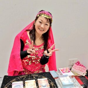 ハリーさん。お久しぶりの出展の感覚でしたが6月以来でした。「占いいやし祭」では自分以外の男性の先生がいないもしくは少ないということが多いので貴重な存在でもある男性の先生。他の出展者さんへの気配りだったりお越しになるお客様への真摯にメニューをお届けする様子が伺えました。実は顔出しNGのため、イラストになってますが、衣装がタロットモチーフで素敵でした。