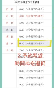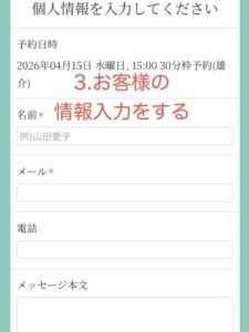 ※40分のメニューなど30分以上のメニューをご希望の場合にはお手数ですが枠を2枠ご予約してください