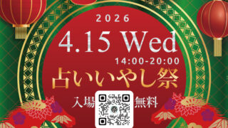 イベント 占いいやし祭:2026.04.15(水) 14:00~20:00 ~The・フレッシュ新生活スペシャル~ お子様連れでのご来場大歓迎第26回 2026年4月15日(水) ~The・フレッシュ新生活スペシャル~開催まで、あと日開催日時第26回:2026.4.15(水) 14:00~20:00開催場所Central space住所:東京都中野区中央... 2025.10.18 イベント